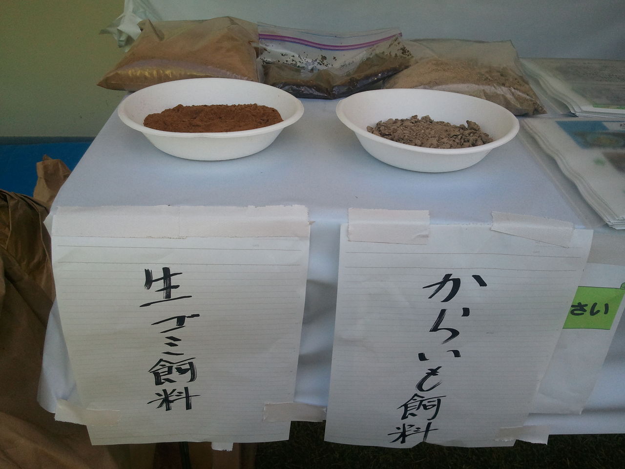 そおリサイクルセンターで試みている飼料化を展示。